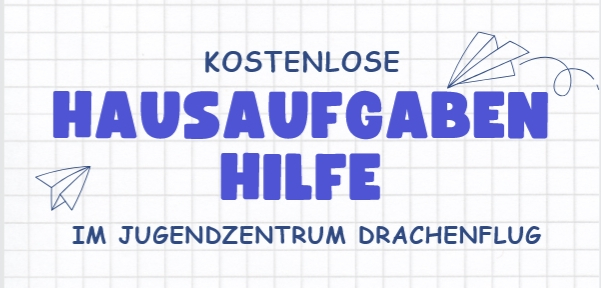 Damit der Start in den Nachmittag leichter fällt, bieten wir im Jugendzentrum Drachenflug eine kostenlose Hausaufgabenbetreuung an. Eingeladen sind alle Kinder bis zur 7. Klasse – unabhängig von der Schulform.